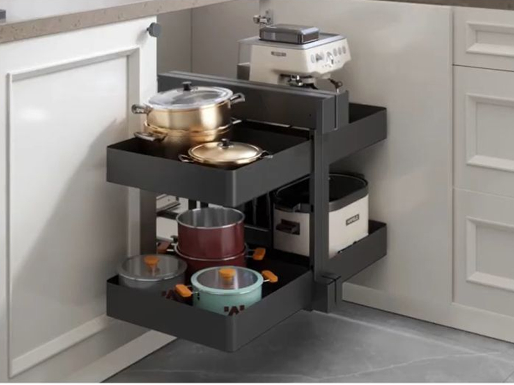 - Hệ thống mở toàn phần cho phép di chuyển cả 4 khay ra ngoài góc tủ