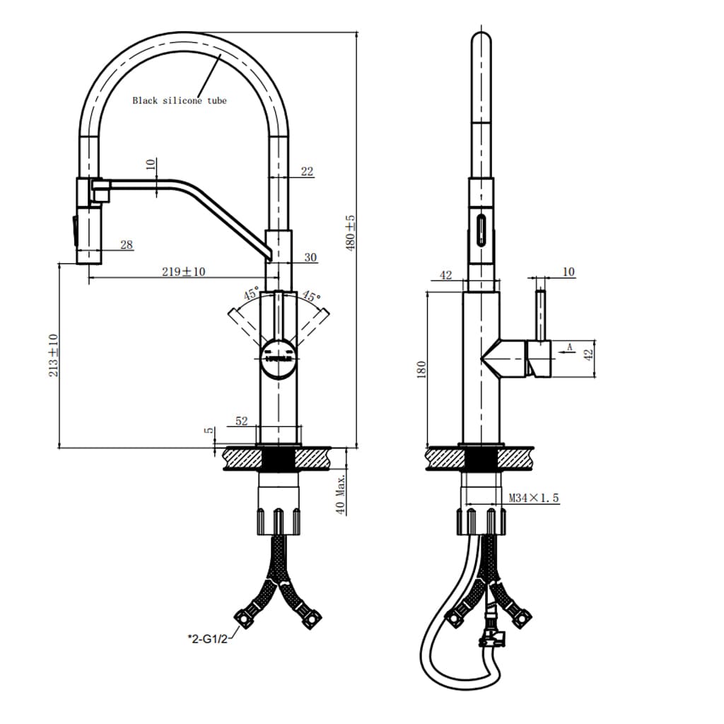 ĐẦU VÒI KÉO DÀI ĐƯỢCVòi rửa bát hafele HT26-SH1F485-BR 570.85.001 với 2 đầu vào nóng lạnh. Nhiệt độ nước cao nhất đến 90ºC. |
